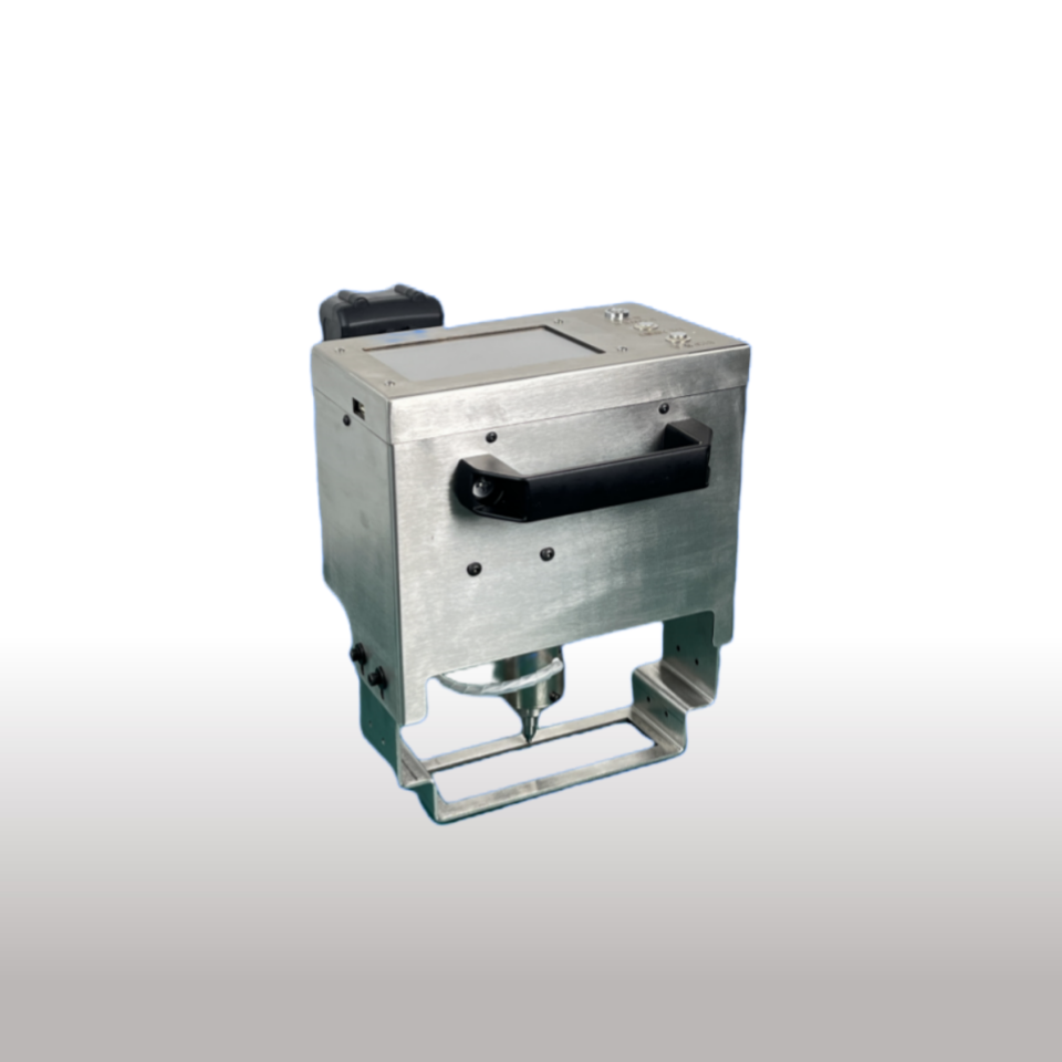 手持電動打標機,采用電磁為動能的方式代替氣動高頻微沖擊點陣打印,革命性的節(jié)省了氣源。同時使用觸摸屏集成控制,減少了電纜的束縛。